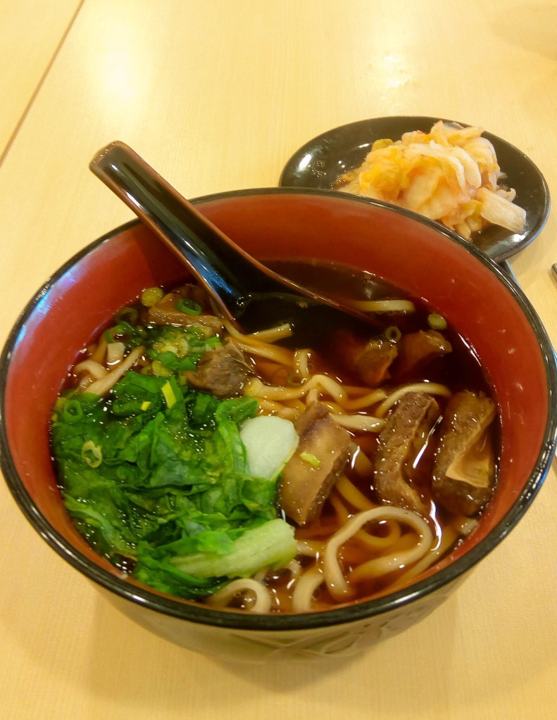 Tired from eating fried foods which we’ve been doing a lot during our first days, we decided to look for another Taiwanese food that isn’t fried and found Sanshang Qiaofu 三商巧福 serving beef noodles to locals.