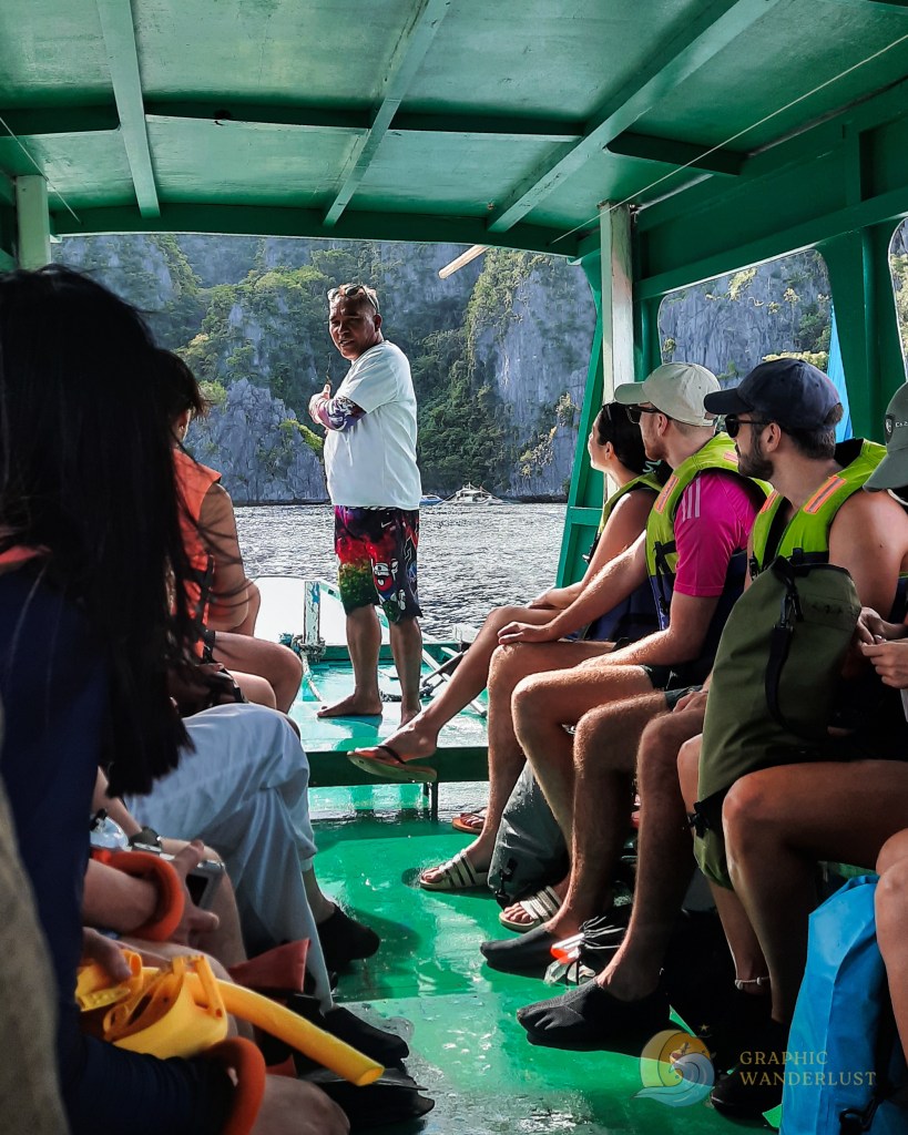 Similar to the previous day, our tour started with being picked up from our accommodation by the organizer’s van and doing an attendance check on the docking port before heading to our assigned boat for the day where met a new set of guides who oriented us on what to expect and the captain for the tour who will be taking us to our first stop for the day which was Malcapuya Island.