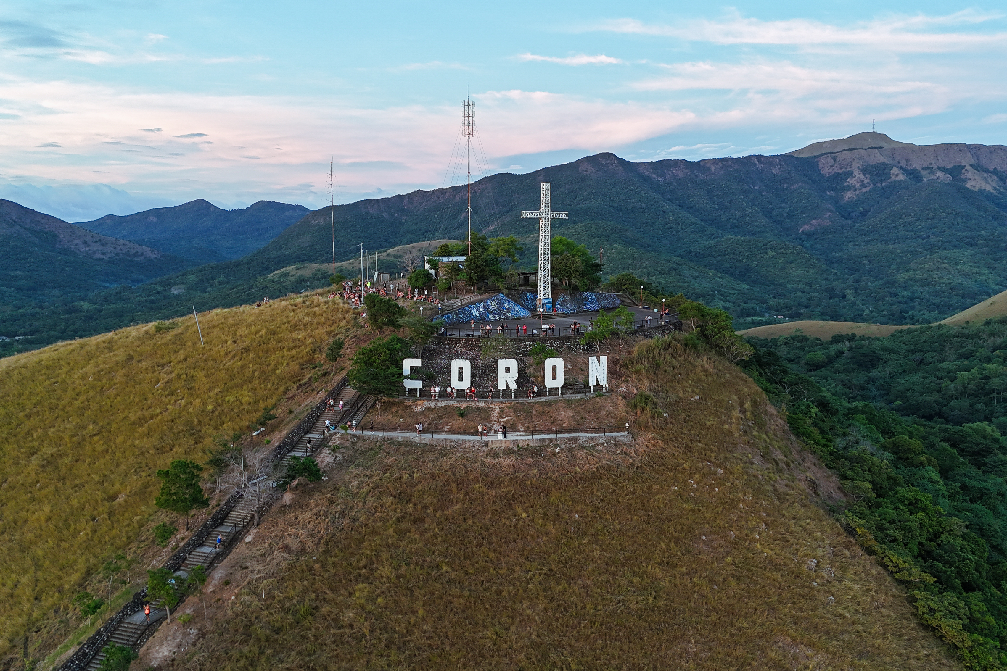 Towering over the entire town proper, this 210-meter mountain is visible in all corners of the main center and boasts a viewing deck offering a scenic view of the surrounding islands and an overlooking scenery of the town below. This is amplified further by its Hollywood-inspired sign and gigantic cross that stand in stark contrast against its surroundings especially at night when they are lighted up.